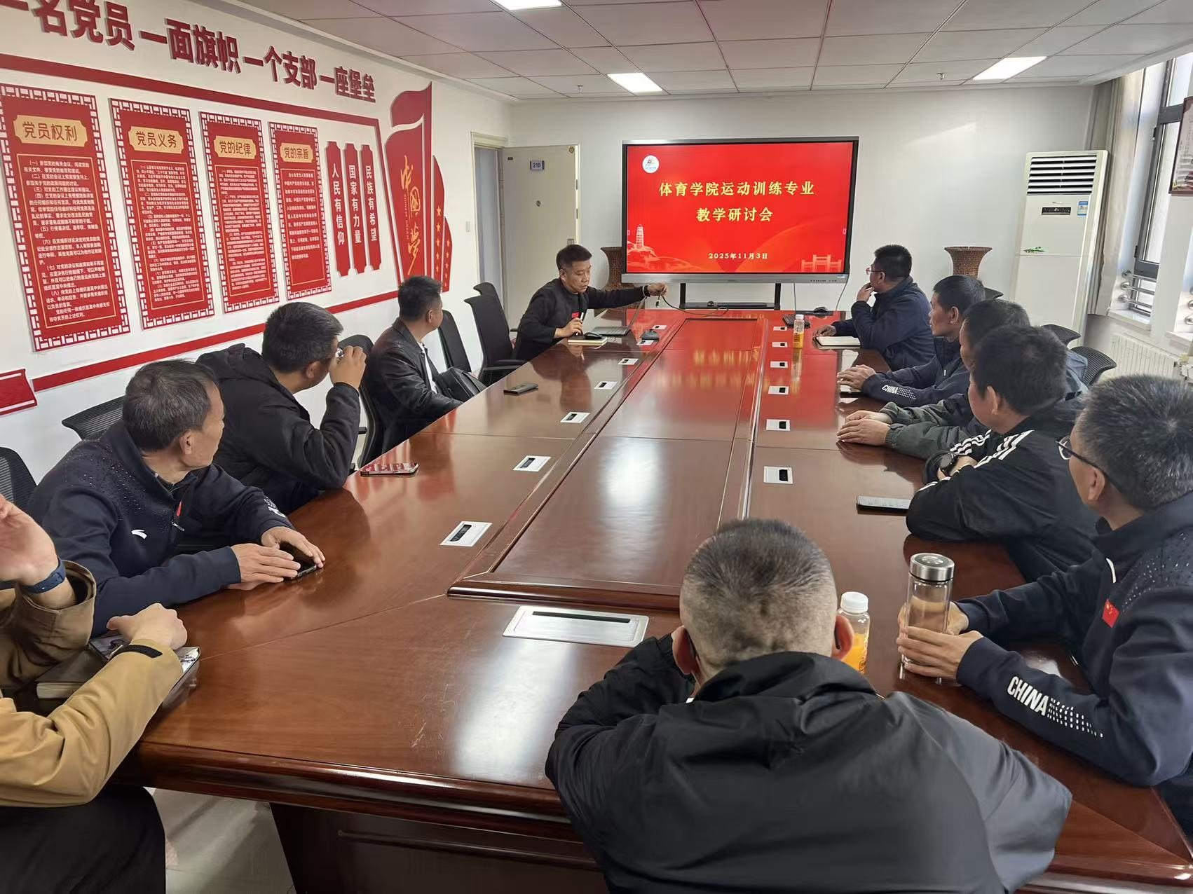 11月3日,我院在党员活动室召开运动训练专业教学研讨会,会议由张应龙副院长主持,全体专修教师参会,与会人员围绕招生规模优化、培养质量提升等核心议题展开深入研讨。