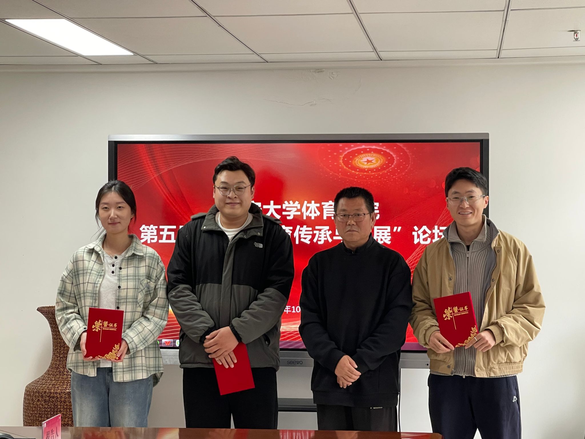 10月24日上午,体育学院第五届“红色体育传承与发展”论坛在学院党员会议室顺利召开。本次论坛由红色体育文化研究中心承办,旨在传承发扬红色体育精神、拓展体育人文研究领域、提升研究生科研能力。论坛由研究生办公室主任许荟蓉主持,副院长薛亚东出席会议并致辞,李世荣教授、杜春斌教授、红色体育文化工程技术中心主任杨学达担任评审专家。
