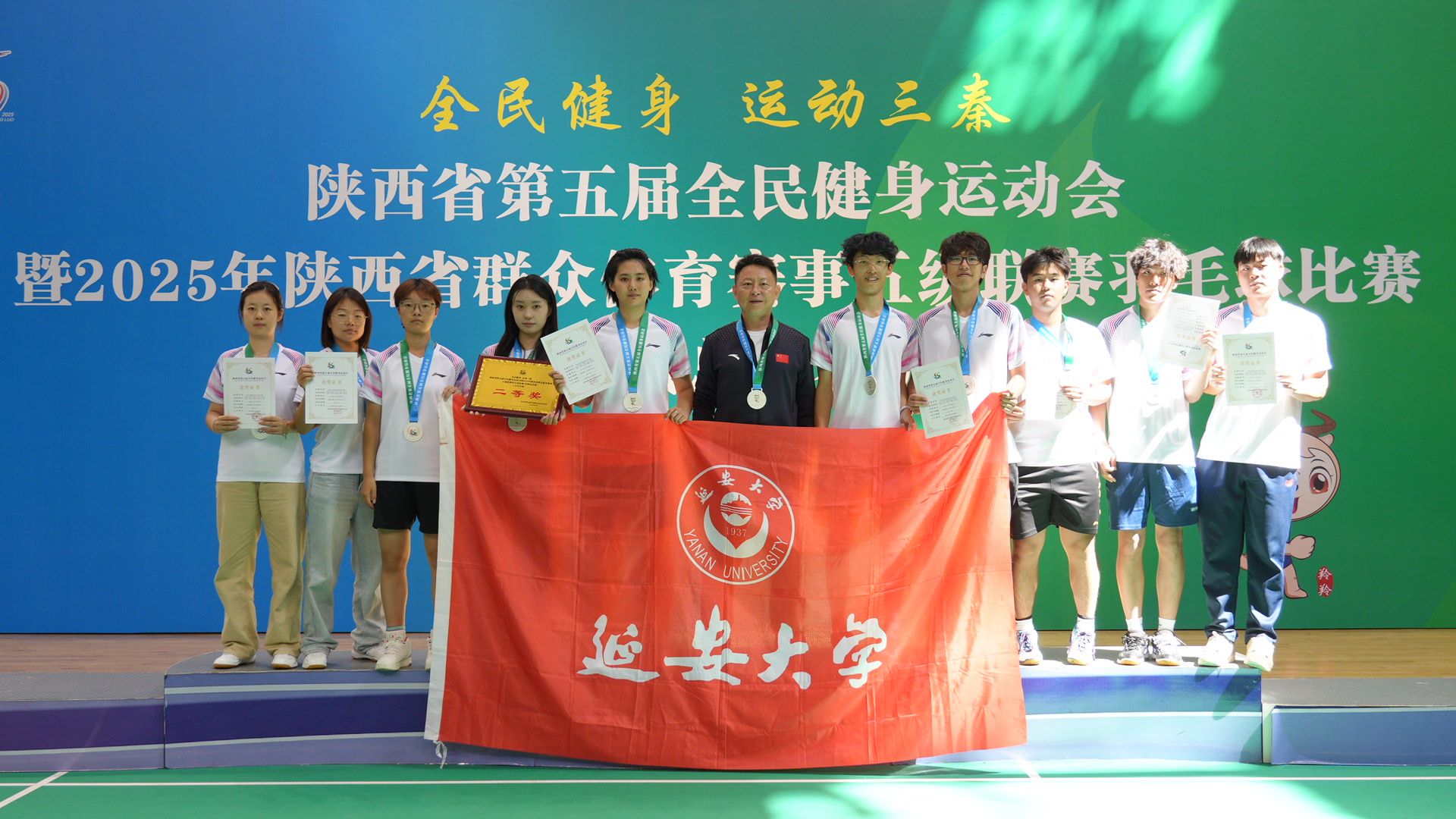 9月23日至27日,由陕西省人民政府主办,陕西省体育局、商洛市人民政府承办的“全民健身·运动三秦”陕西省第五届全民健身运动会暨2025年陕西省群众体育赛事五级联赛羽毛球比赛(省级总决赛)在商洛市体育馆隆重举办。此次赛事汇聚全省11个地市的15支代表队、300余名羽毛球爱好者同场竞技。我校派出了由体育学院副院长宗延伟为领队,姜小峰为教练,马天宇等10名运动员组成的代表队参加了本次比赛。