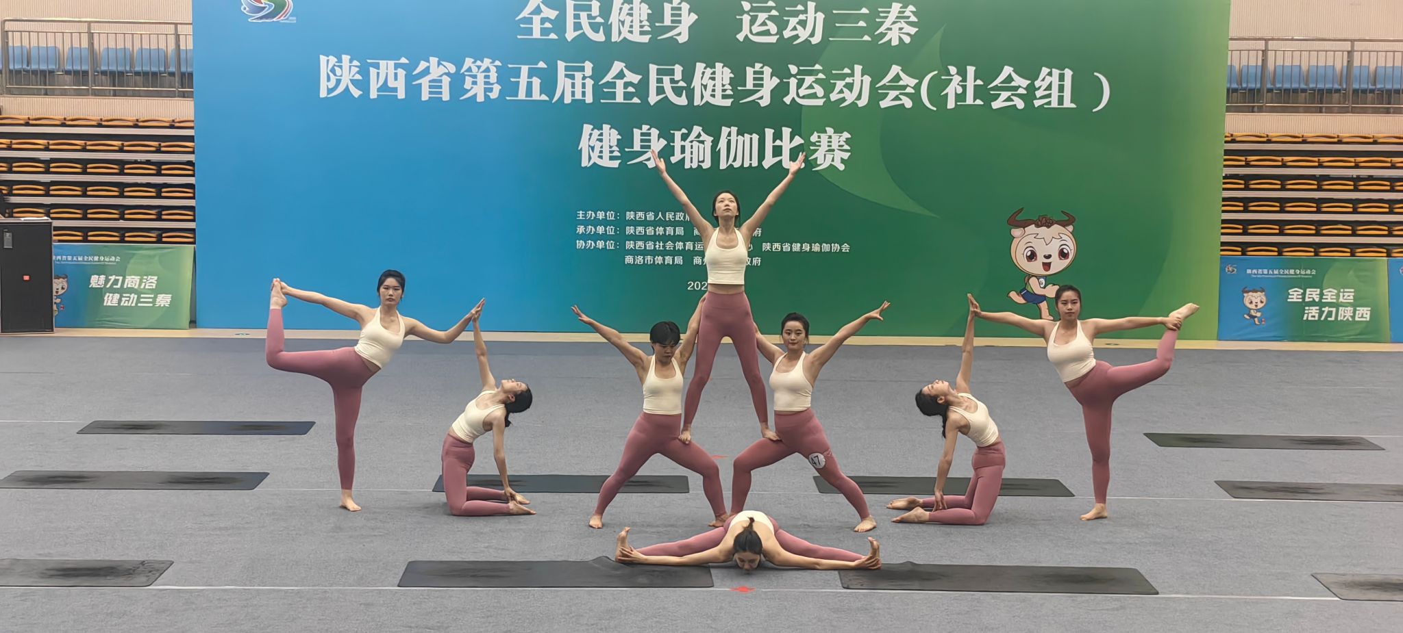 由陕西省人民政府主办,陕西省体育局、商洛市人民政府承办的2025年陕西省第五届全民健身运动会于9月19日-21日在商洛市商州区体育馆进行,我校派出了由体育学院院长宗有智为领队、教师王辉为教练,贾咏荷等8名运动员组成的代表团参加了健身瑜伽项目比赛。